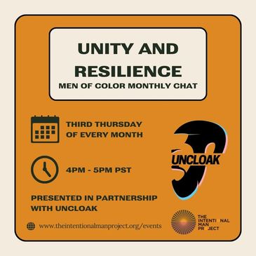 Uncloak has partnered with The Intentional Man Project to bring you Unity and Resilience: Men of Color Chat. Join us starting Thursday, February 20th, 2025, and every 3rd Thursday of the month thereafter, from 4:00 - 5:00 PM PST | 7:00 - 8:00 PM EST
